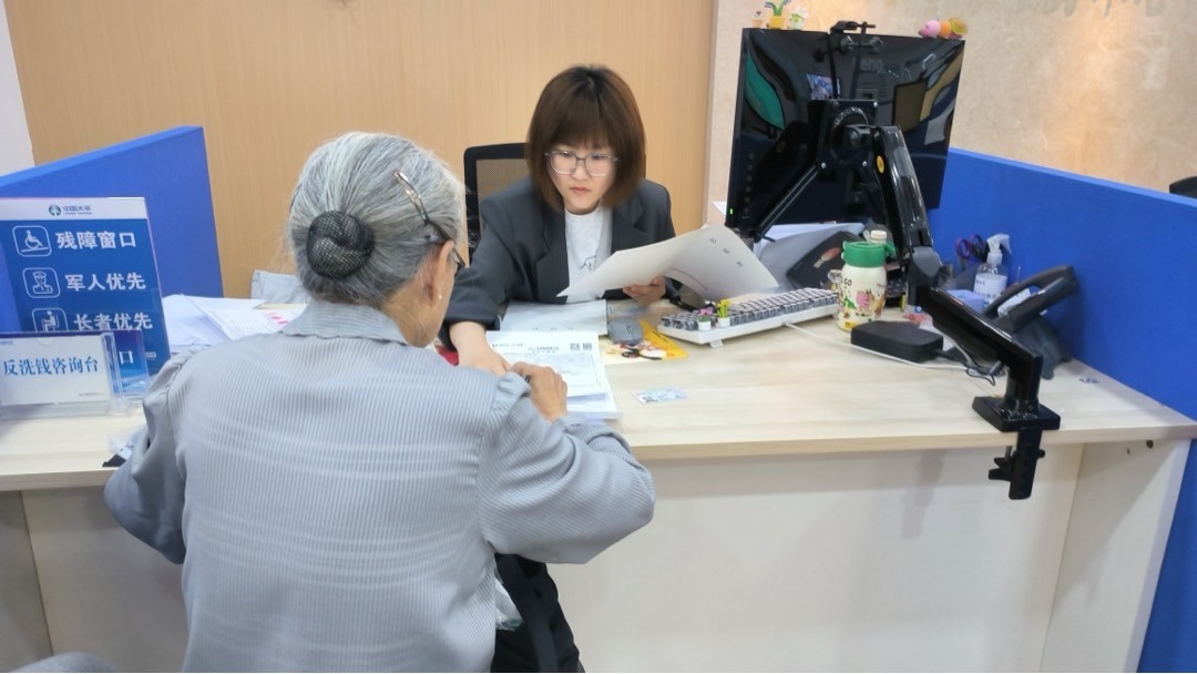 工作人員協(xié)助跨境老齡客戶辦理業(yè)務