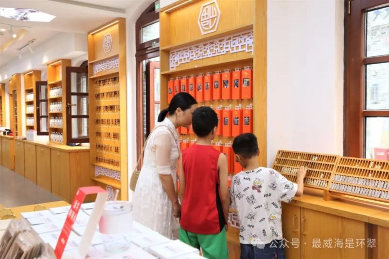 隨機(jī)走進(jìn)一家文創(chuàng)店,富有威海特色的桌面擺件、扇子、冰箱貼等琳瑯滿目,令人目不暇接,大家或?qū)⒕赖奈锲份p輕拿起,或俯下身子仔細(xì)觀賞。來(lái)自四川的王女士帶著孩子前來(lái)游玩,體驗(yàn)過(guò)老街的魅力后,她忍不住贊嘆:“將古建筑元素融入到現(xiàn)代都市中,感覺(jué)非常奇妙,街上有很多文創(chuàng)店,都非常有特色,非常適合帶回去留作紀(jì)念?!?/p>